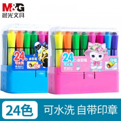 晨光(M&G)ACP92149水彩笔六角印章彩笔绘画笔可水洗涂鸦绘画笔 外观颜色粉色/蓝色 (24色/盒)