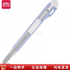 得力2031浅蓝美工刀开箱器金属外壳壁纸刀锌合金樱花拆快递随身裁纸刀