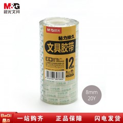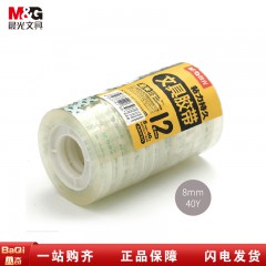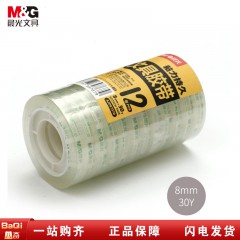 晨光AJD97369 文具透明胶带学生专用胶条胶纸细交带办公财务强力封口胶布环保封箱带8mm*20y (12卷/筒)