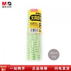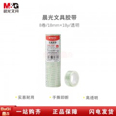 晨光AJD97322 透明胶带学生专用胶条胶纸细交带办公财务强力封口胶布环保封箱带18mm*18y(8卷/筒)