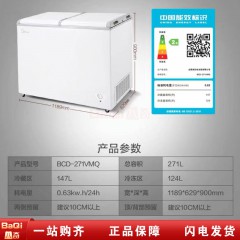 美的 BCD-271VMQ 家用冰箱 双温大容量 冷冻冷藏 商用卧式雪糕冷柜 1189*629*900mm