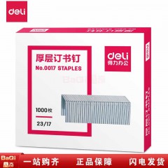 得力0017加厚订书钉 厚层省力通用型订书针 穿透力强 耐用不卡钉