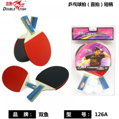 双鱼 126A 乒乓球拍(直拍)短柄 一付带三球 【259】