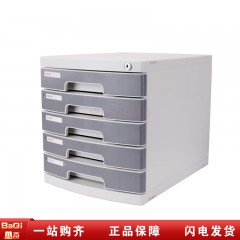 得力 8855桌面文件柜 五层带锁塑料抽屉式办公桌面文件整理柜(浅灰)