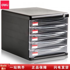 得力 9795 桌面文件柜 五层塑料文件柜(透明抽屉带锁)黑色
