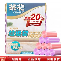 茶花 垃圾袋3215P一次性点断式加厚垃圾袋45*55特惠5卷装垃圾袋清洁袋