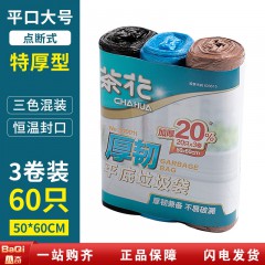茶花 300011 垃圾袋家用厚韧平口一次性拉圾塑料袋式【3卷×20只】50*60cm 加厚