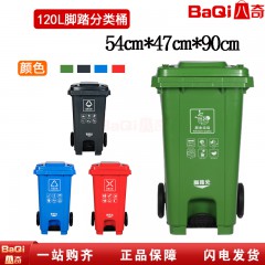 八奇 绿色厨余垃圾脚踏分类垃圾桶120L
