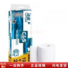 清风/qingfeng BJ00AB 卷筒纸舒柔纯品3层平纹180米珍宝卷纸卫生纸厕纸 12卷/箱