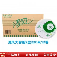 清风 BJ02AJ 220米2层12卷大盘纸卷筒纸厕纸卫生纸洗手间纸巾(12卷/箱)