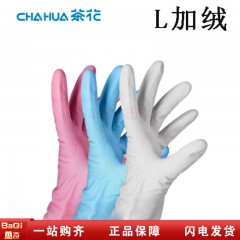 茶花 家务手套C78015加绒款PVC耐用手套L号亲肤耐用 易脱易戴1双装颜色随机