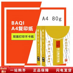 八奇 A4 80g 打印纸多功能复印纸黄八奇纯木浆纸 双面复印不卡纸 8包/箱