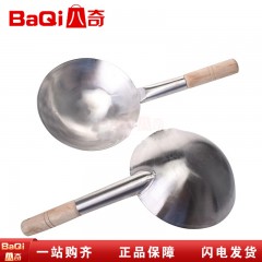 八奇不锈钢木柄加厚漏壳木柄水瓢 菜壳 大漏勺大漏壳小单柄炒锅 大汤勺长约45CM