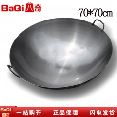 八奇 70*70cm 铁锅炒锅双耳钢板锅手打熟铁炒锅老式加厚铁锅