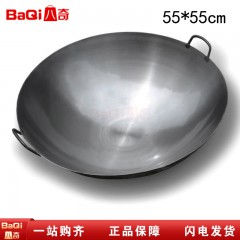 八奇 55*55cm铁锅炒锅双耳钢板锅手打熟铁炒锅老式加厚铁锅