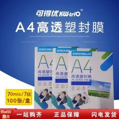 可得优 7c过塑膜A4塑膜菜单文件护卡膜塑封机过胶纸热塑袋相片封膜纸透明标本树叶保护膜塑封膜(100张/盒)