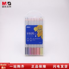 晨光AWPQ0506 12色无木环保彩色铅笔 可擦彩铅 学生美术绘画填色 六角杆黄筒装