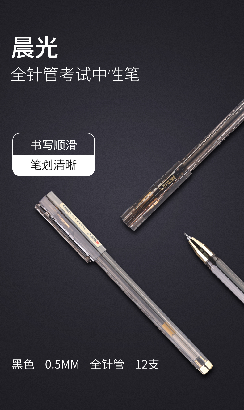 晨光AGPA1709 中性笔0.5mm考试用中小学生碳素黑全针管水笔(12支/盒)