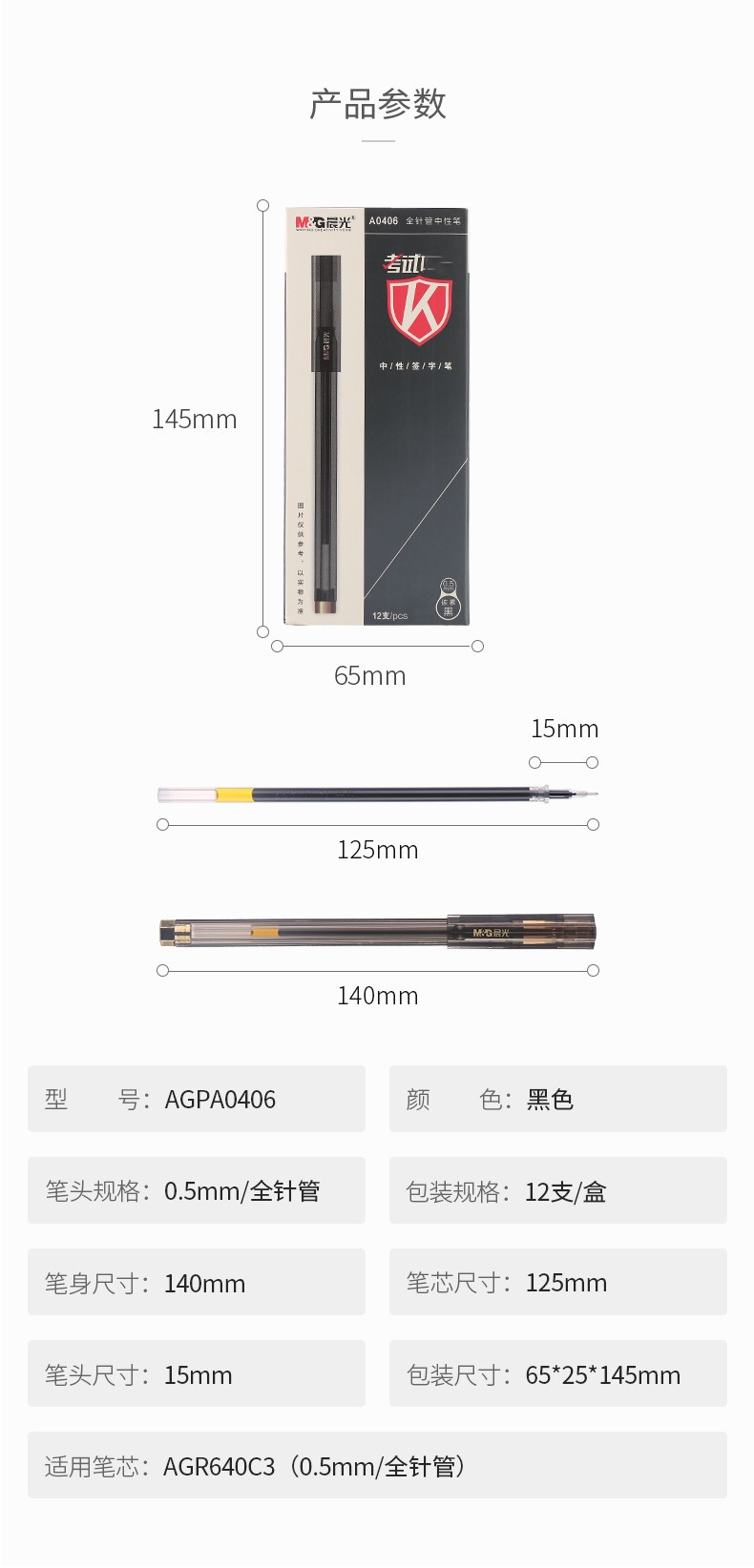 商品名称:晨光(M&G) AGPA0406中性笔学生考试笔 全针管签字笔 碳素黑水笔 0.5mm (12支/盒)