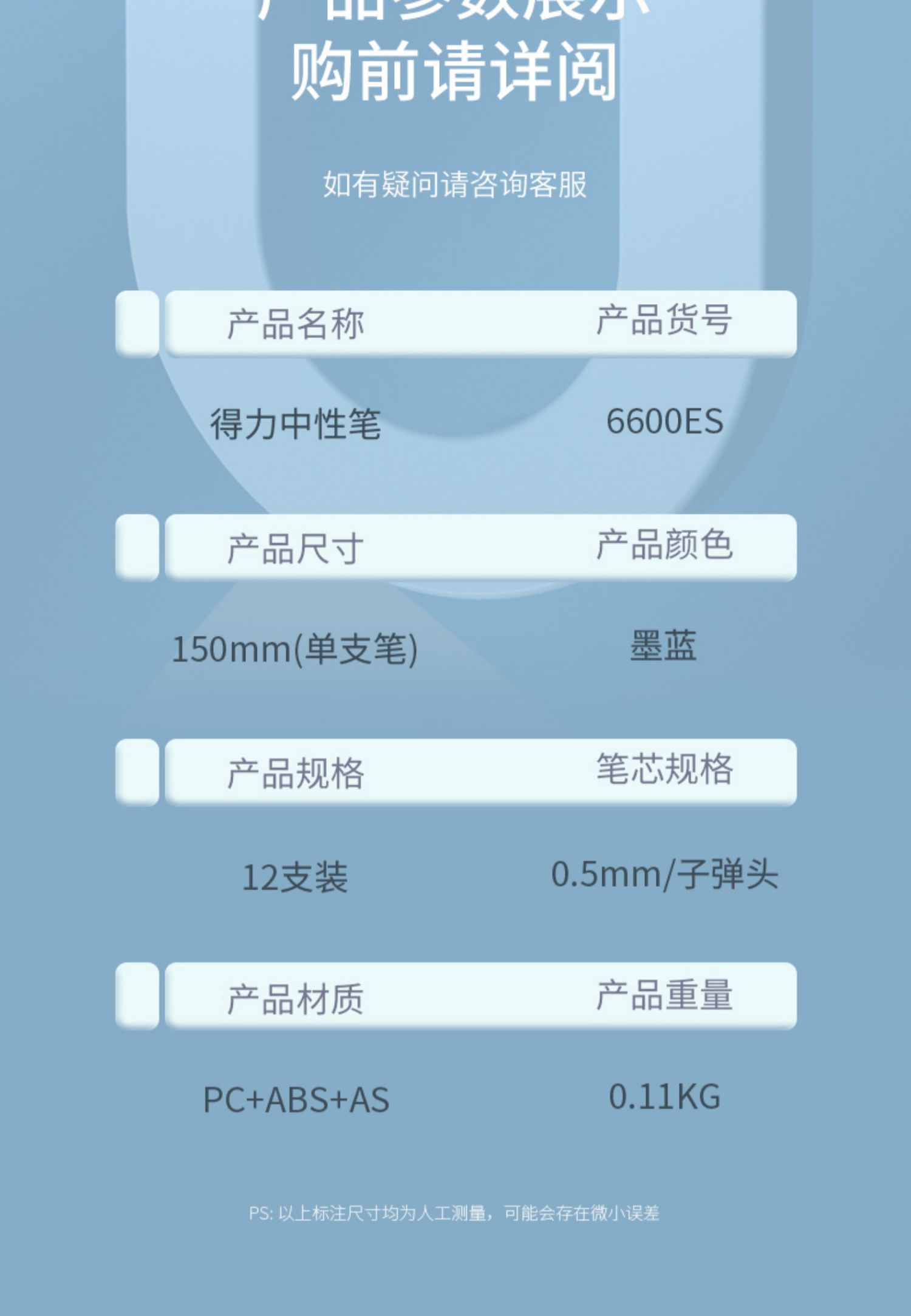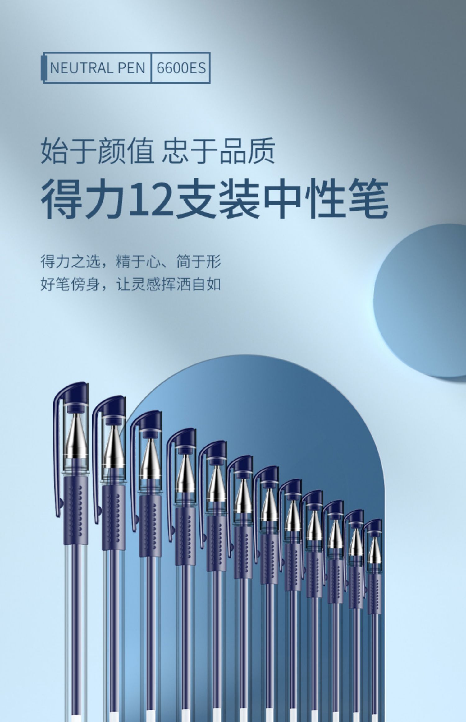 商品名称:得力(deli)6600ES墨蓝0.5mm中性笔水笔 子弹头签字笔12支/盒