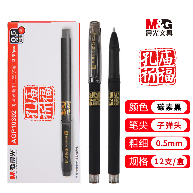 商品名称:晨光(M&G) AGP10302中性笔学生考试用圆珠水性签字笔0.5mm 黑色 (12支/盒)