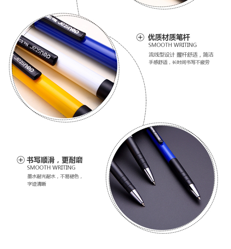 商品名称:得力(deli) 6505 圆珠笔中油笔 0.7mm子弹头按动笔 办公用品 蓝色 12支装