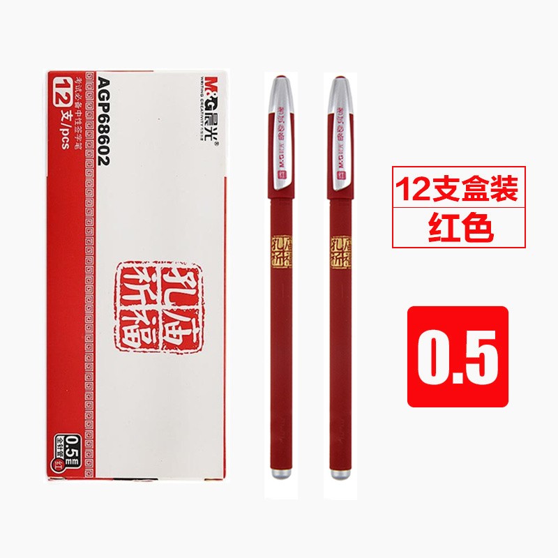 商品名称:晨光(M&G)AGP68602中性笔学生用高中生考试用笔水笔黑色/红色0.5mm盒装签字笔 (12支/盒)