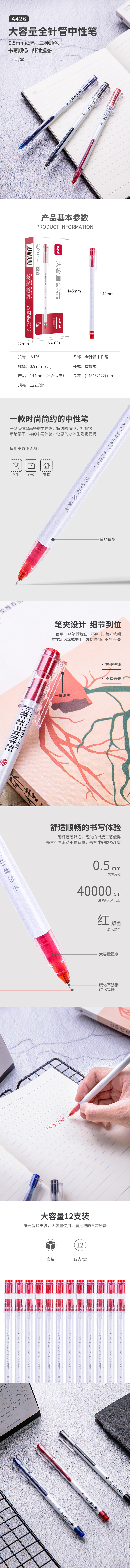 商品名称:得力(deli) A426巨能写中性笔大容量全针管耐用0.5mm 红色 12支装
