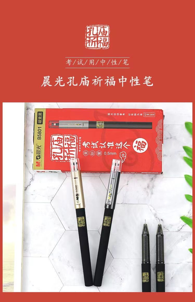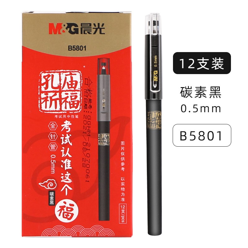 晨光(M&G)AGPB5801全针管孔庙祈福系列0.5mm黑色学生中性笔水笔拔帽签字笔(12支/盒)