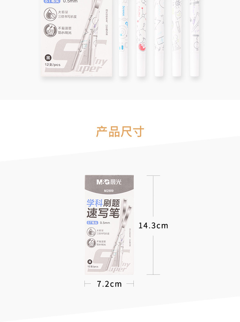 商品名称:晨光(M&G)ARPM2909直液式速写笔学科刷题水性签字笔走珠笔 黑色 0.5mm (12支/盒)
