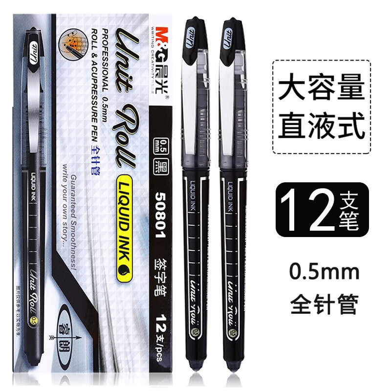 晨光(M&G)ARP50801直液式走珠笔中性笔可换替芯学生考试用水性笔黑笔商务用笔 0.5mm (12支/盒)