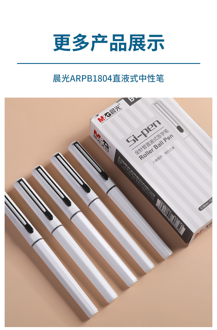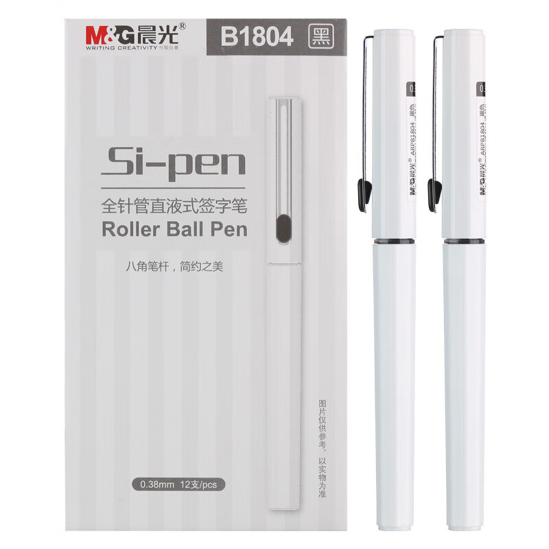 商品名称:晨光(M&G)ARPB1804大容量直液式速干中性笔针管式水笔走珠笔学生考试办公签字笔 黑色 0.38mm (12支/盒)