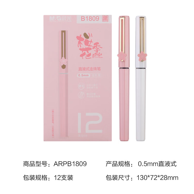 商品名称:晨光(M&G)ARPB1809中性笔樱花季限定系列直液式走珠笔学生用考试用少女心全针管0.5mm (12支/盒)