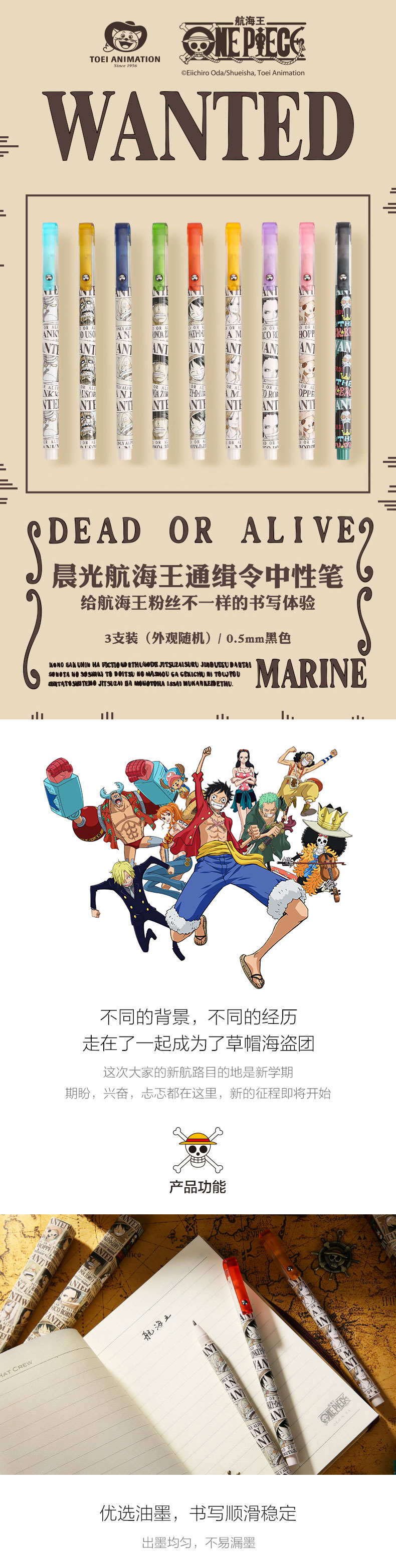 商品名称:晨光(M&G)QRP50941盲盒笔航海王直液式中性笔海贼王限定纪念版直液式走珠笔学生用黑色0.5mm (12支)