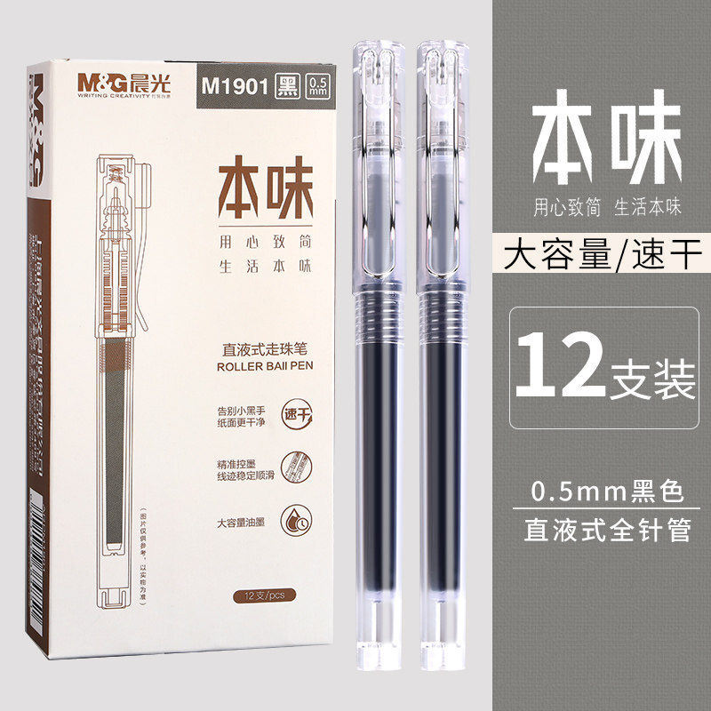 商品名称:晨光(M&G)ARPM1901直液式中性笔0.5mm笔芯学生水笔软胶走珠笔 黑色(12支/盒)