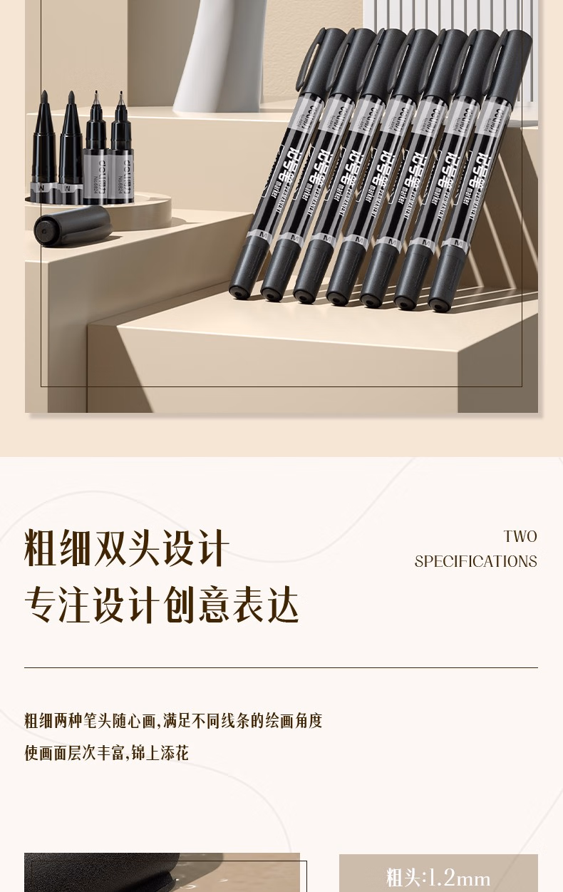 商品名称:得力(deli) 勾线笔勾边描边双头油性记号笔细儿童画画绘画马克笔美术 6824记号笔红色双头(12支/盒)