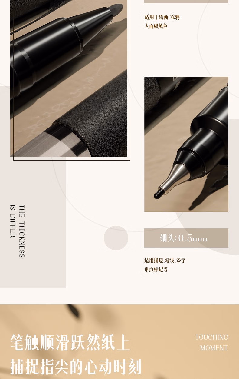 齐心 MK804 0.5mm和2.0mm 小双头记号笔 红/黑/蓝
