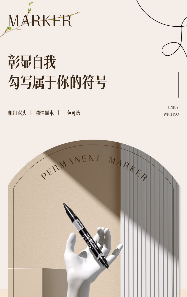 得力(deli) 勾线笔勾边描边双头油性记号笔细儿童画画绘画马克笔美术 6824记号笔红色双头(12支/盒)