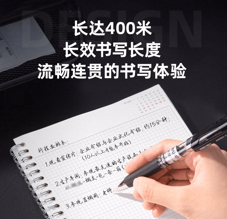 得力A119彩色0.5mm全针管中性笔学生重点标记笔 12支/盒 黑色