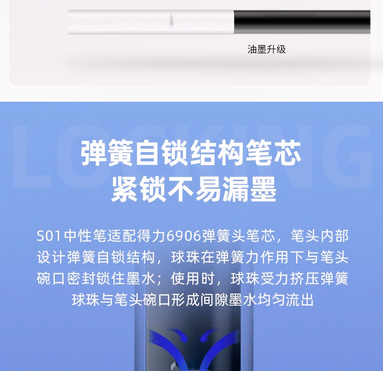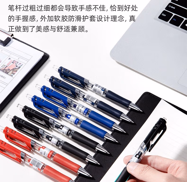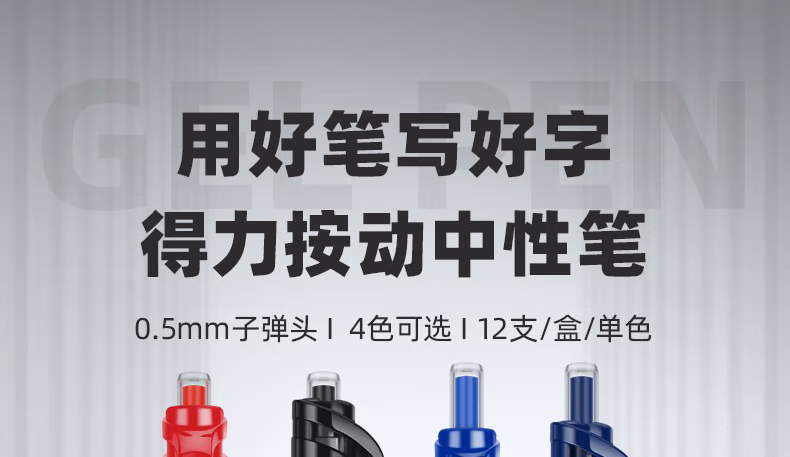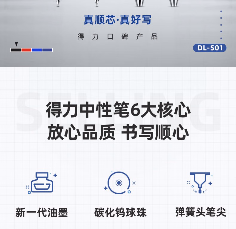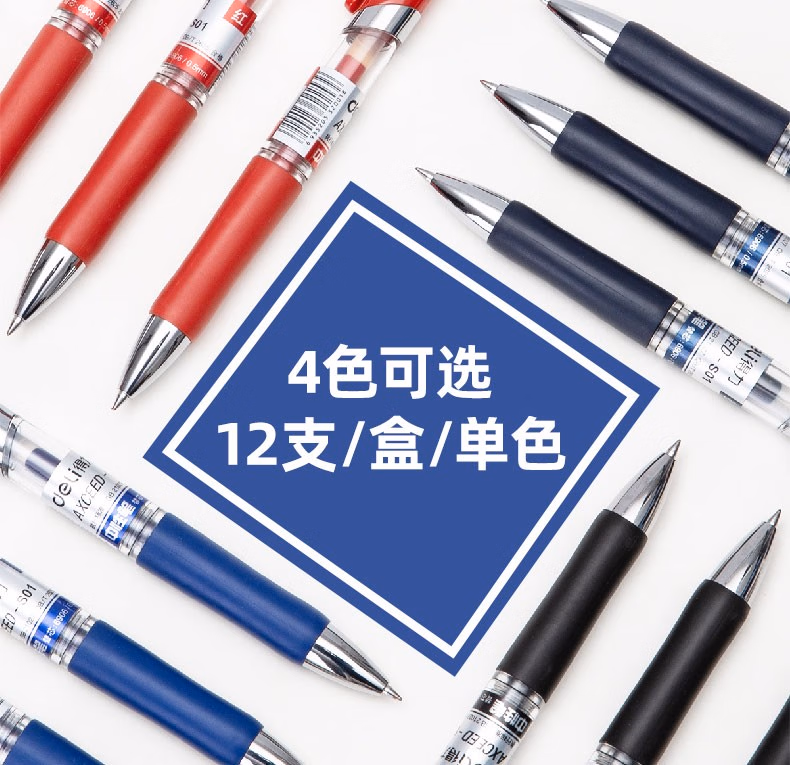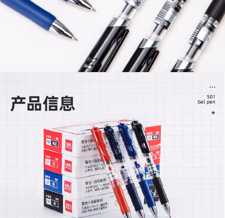 商品名称:得力(deli)S01中性笔签字笔 0.5mm子弹头经典办公按动笔水笔 黑色 12支/盒