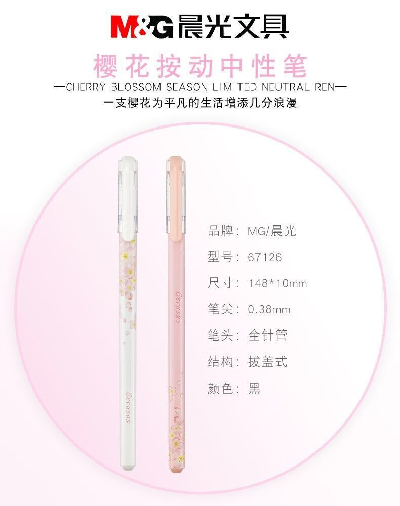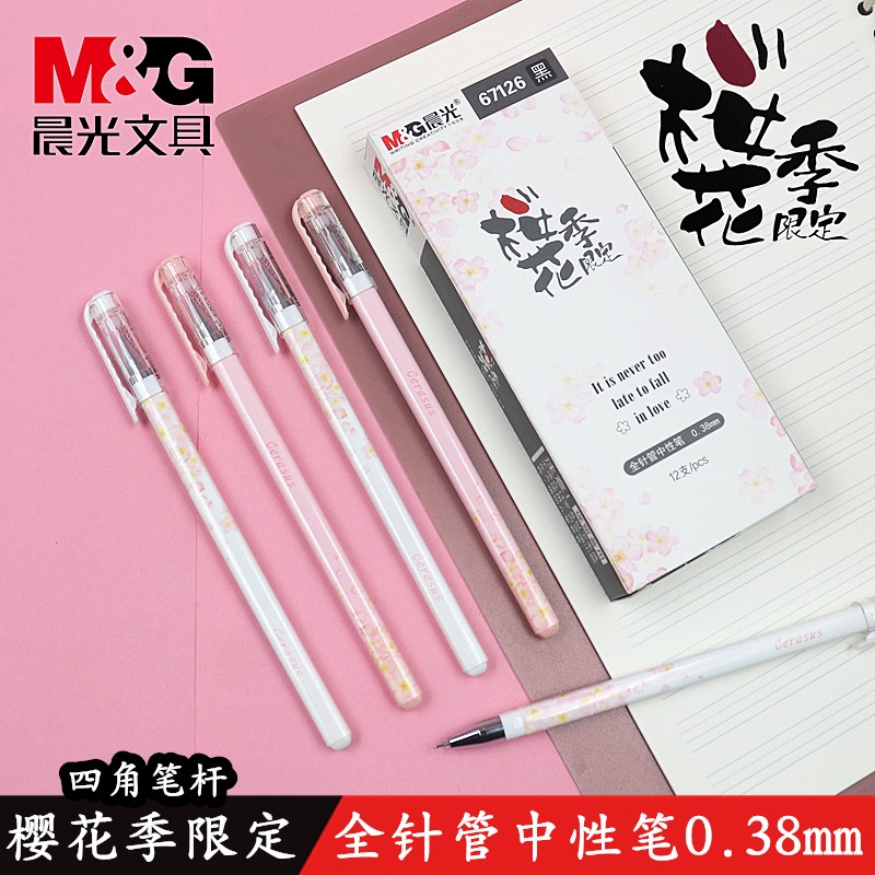 商品名称:晨光(M&G) AGP67126 樱花季限定中性笔0.38mm全针管签字笔粉色系水笔 黑色 (12支/盒)