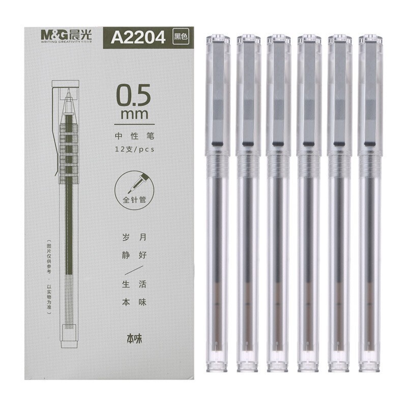 商品名称:晨光(M&G)AGPA2204中性笔 全针管磨砂笔杆签字笔 学生文具拔盖水笔黑色 0.5mm (12支/盒)