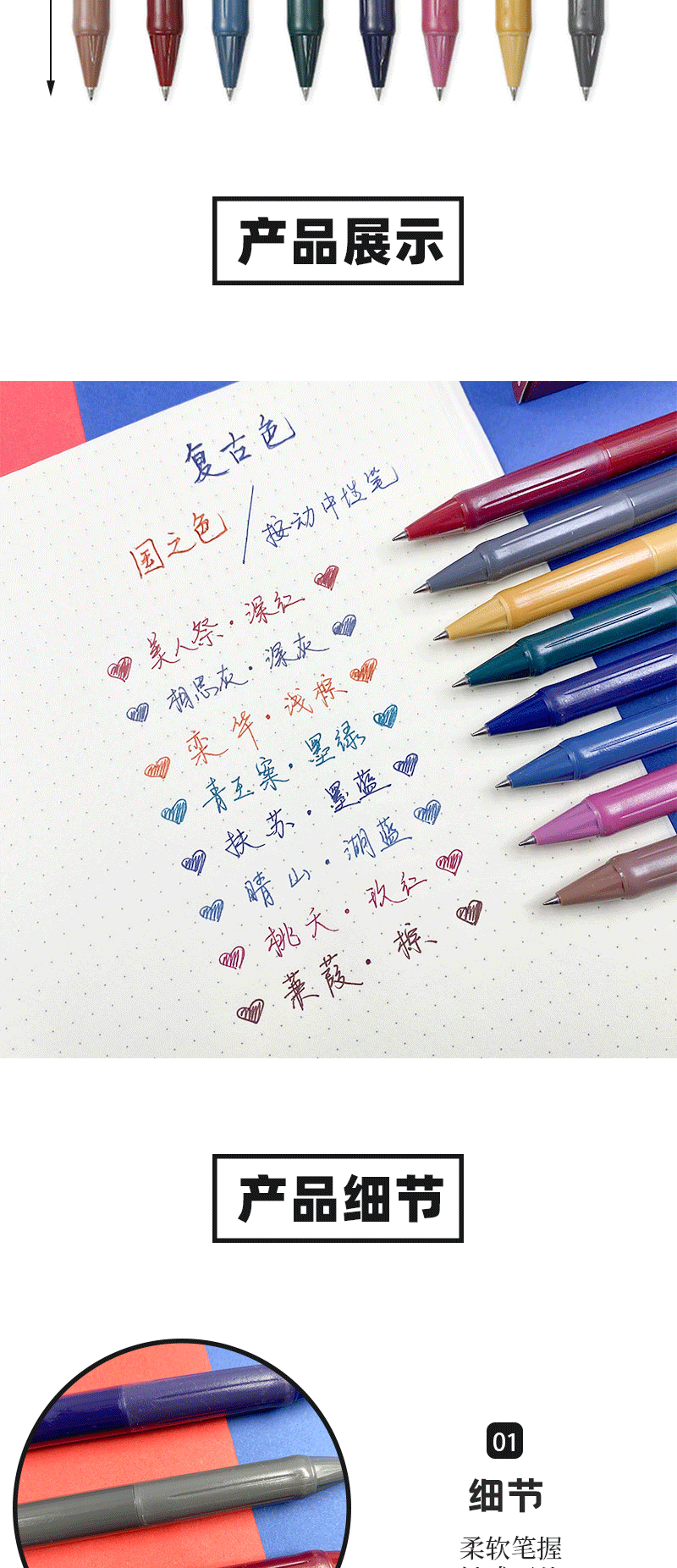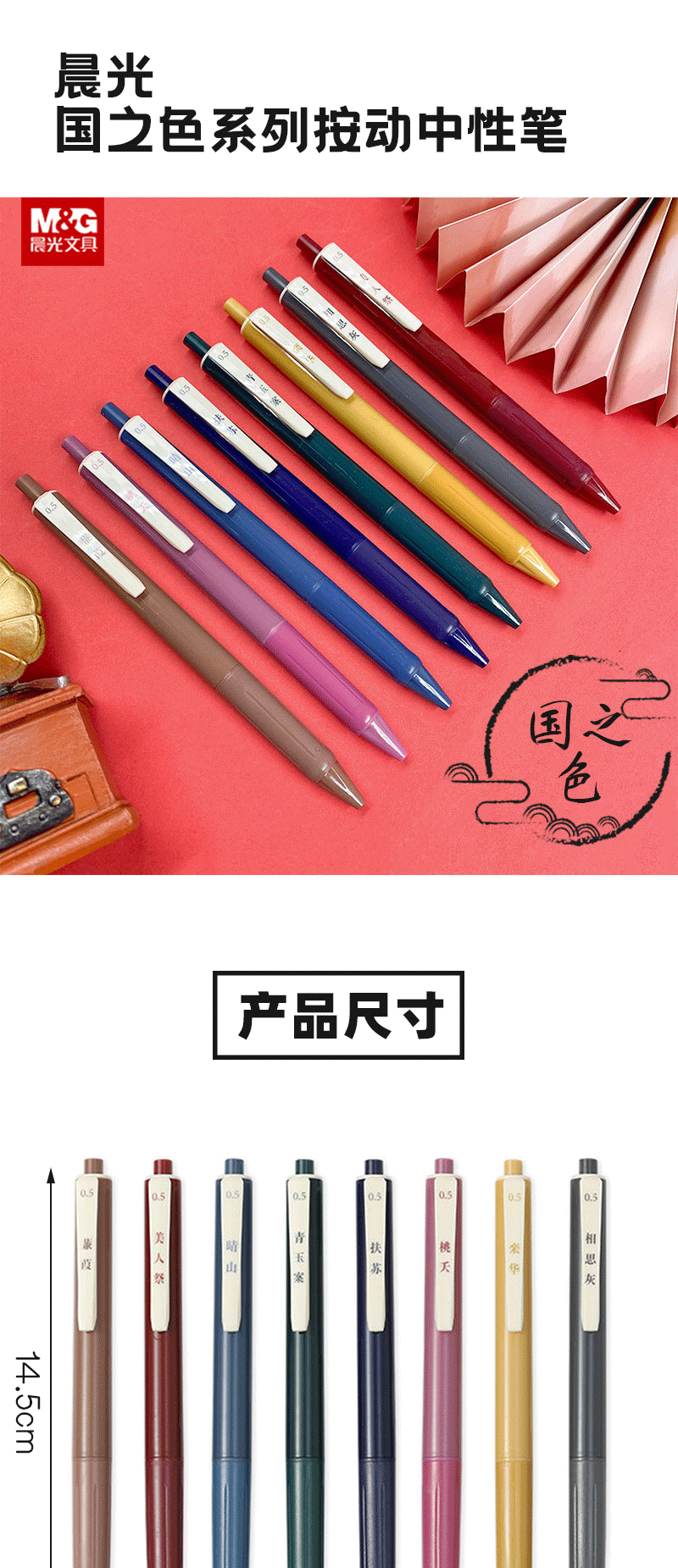 商品名称:晨光(M&G)AGPH5621国风复古色彩色中性笔握感舒适书写顺滑耐磨耐用学生用笔 0.5mm 八色