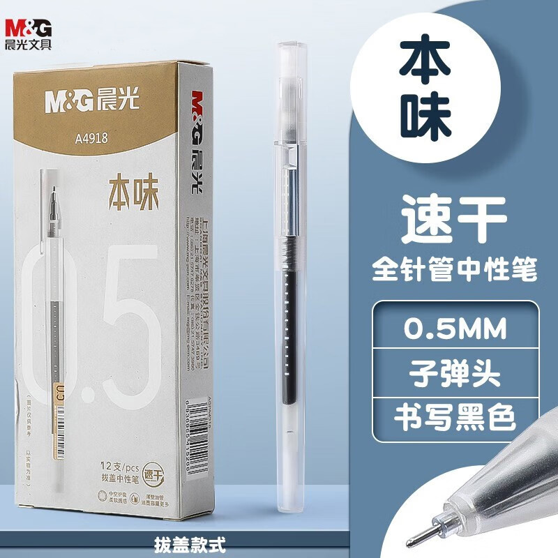 商品名称:晨光(M&G)AGPA4918 速干中性笔按动直液式笔学生办公签字黑色水笔 0.5mm (12支/盒)