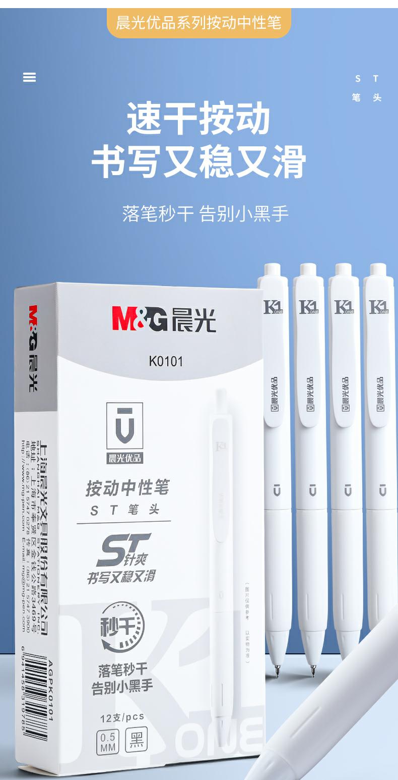 商品名称:晨光(M&G) AGPK0101秒干按动中性笔黑色st笔头水笔考试用按动式黑笔碳素笔水性签字笔刷题笔 0.5mm(12支/盒)
