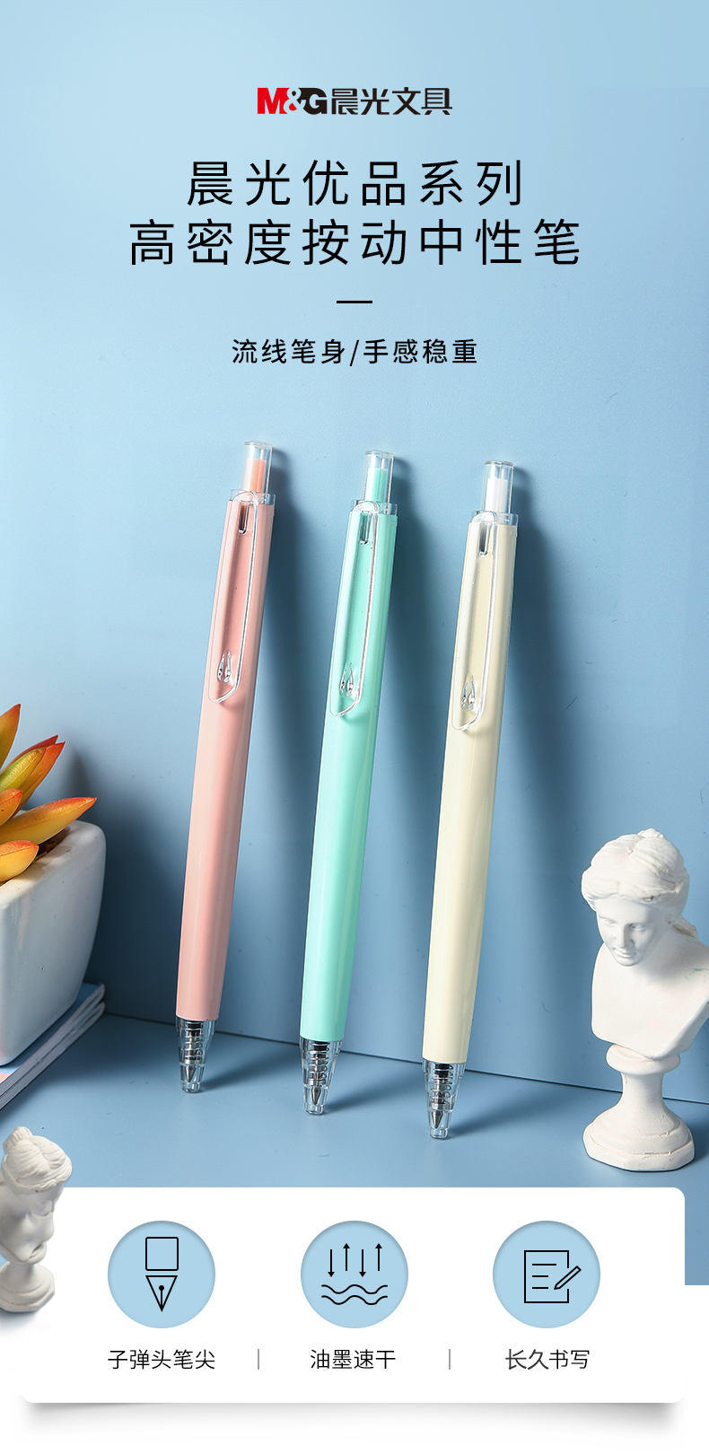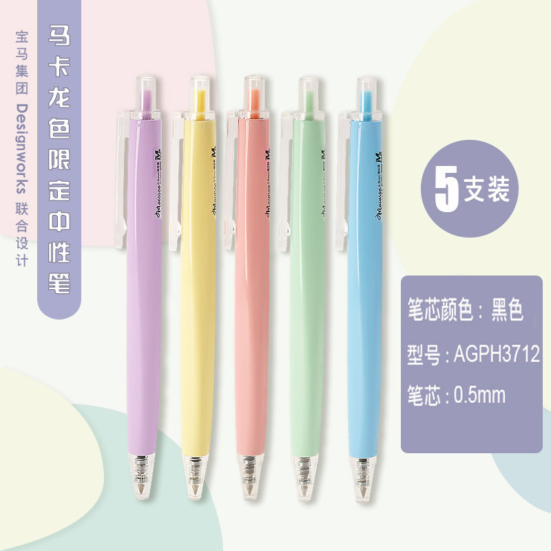 商品名称:晨光(M&G) AGPH3712中性笔 马卡龙色简约中性笔学生水笔签字笔 学习办公用中性笔 黑色 0.5mm (5支/盒)