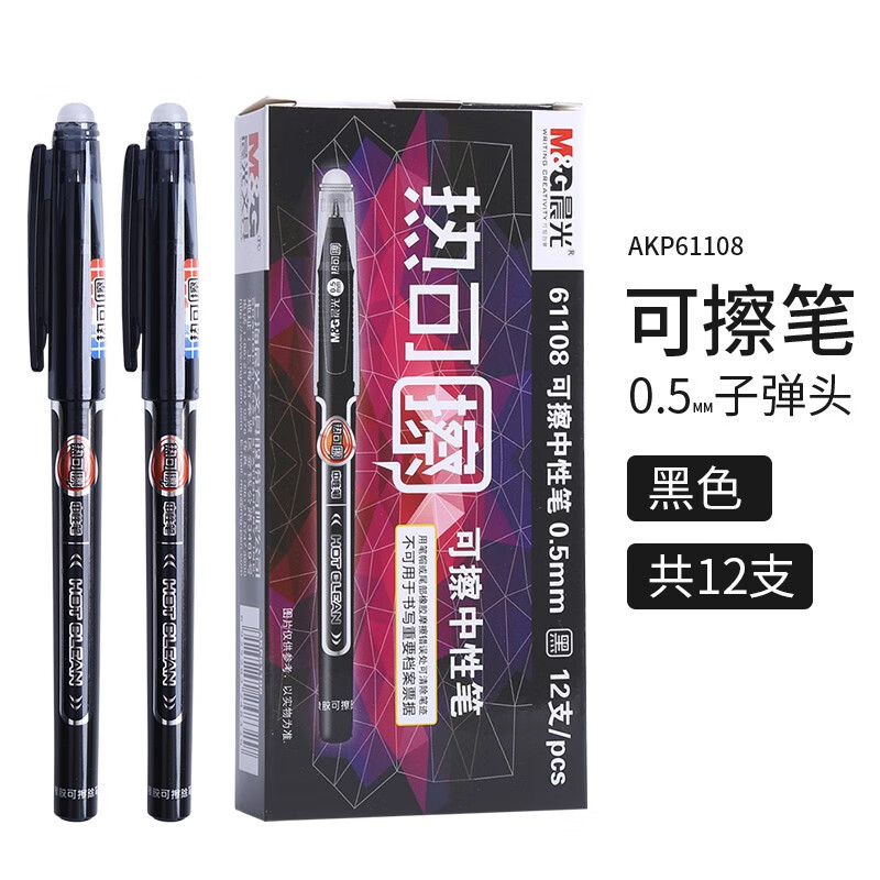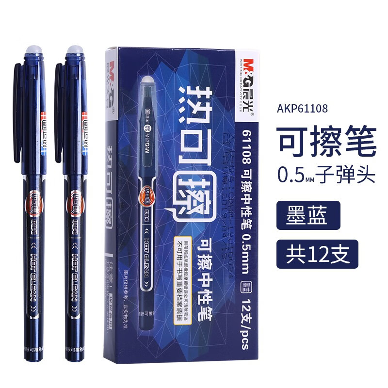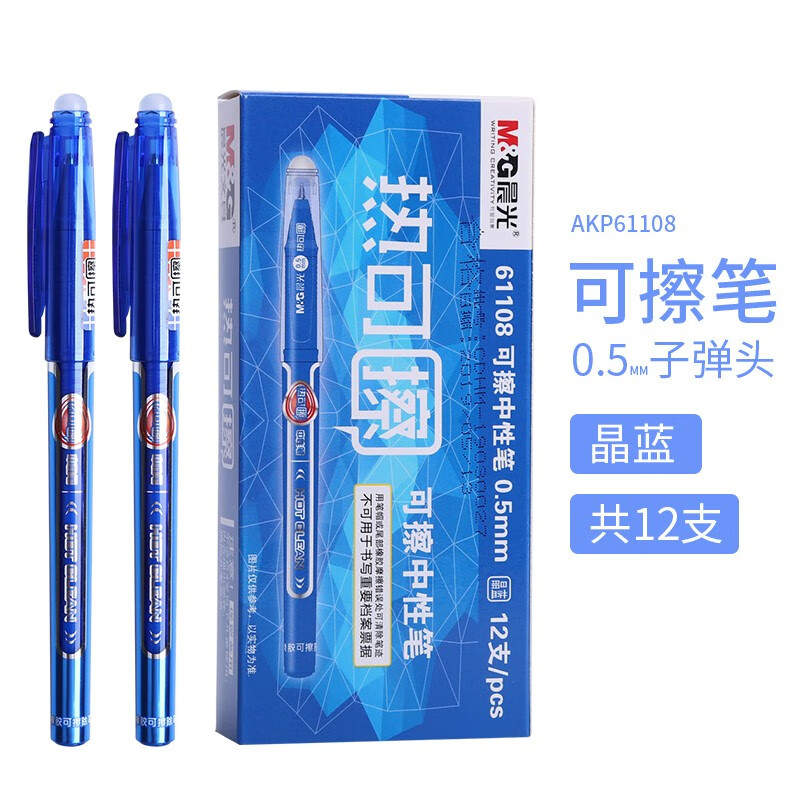 商品名称:晨光(M&G)AKP61108可檫写中性笔子弹头签字笔 热可擦学生水笔 0.5mm 黑色/晶蓝色/墨蓝色 (12支/盒)