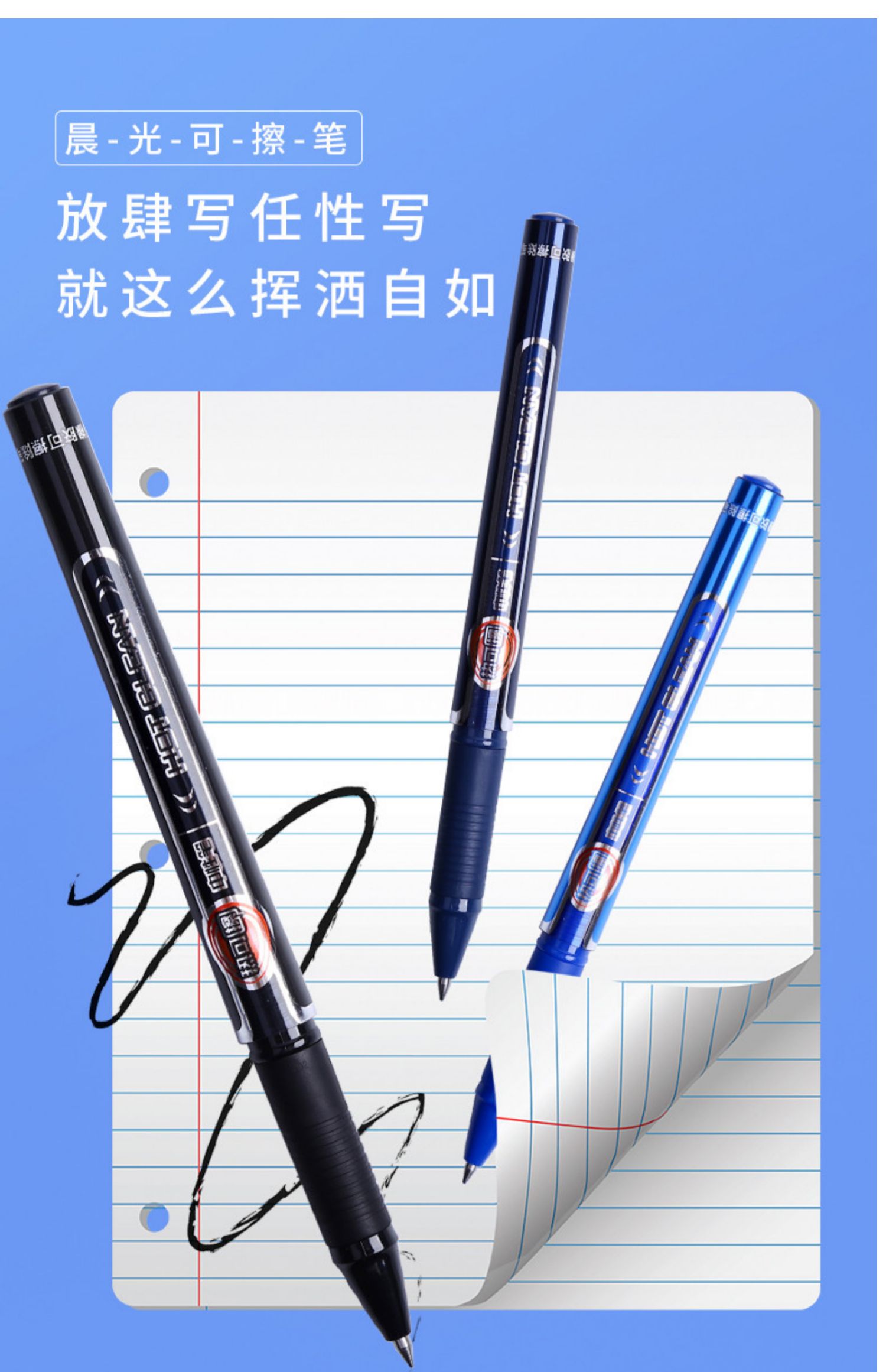 晨光(M&G)AKP61108可檫写中性笔子弹头签字笔 热可擦学生水笔 0.5mm 黑色/晶蓝色/墨蓝色 (12支/盒)