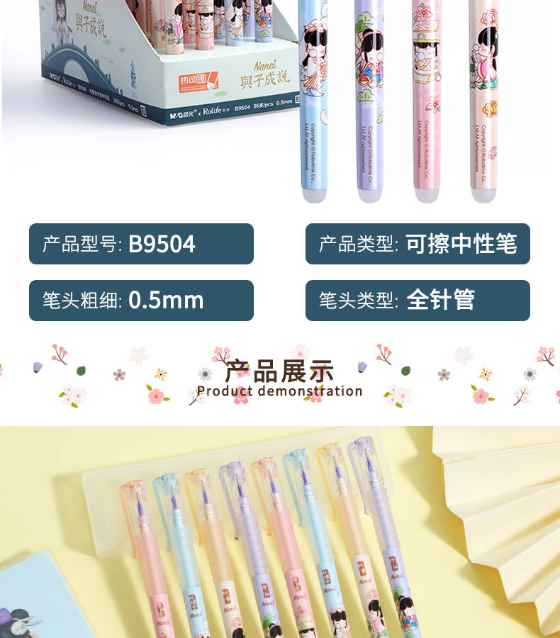 商品名称:晨光(M&G)AKPB9504热可擦中性笔 与子成说系列签字笔摩易擦笔 0.5mm 黑色/晶蓝色/蓝色 (36支/盒)