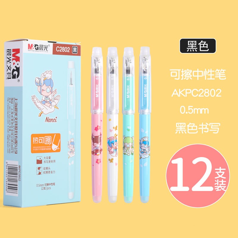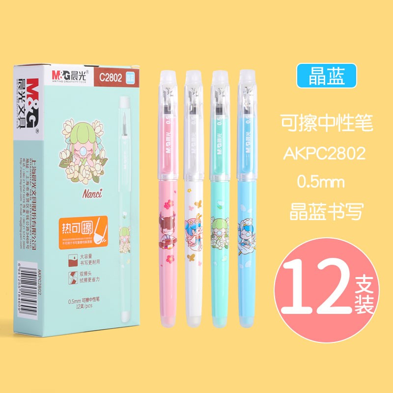 商品名称:晨光(M&G)AKPC2802热可擦中性笔 囡茜nanci系列大容量可擦中性笔 黑色/晶蓝色 0.5mm (12支/盒)